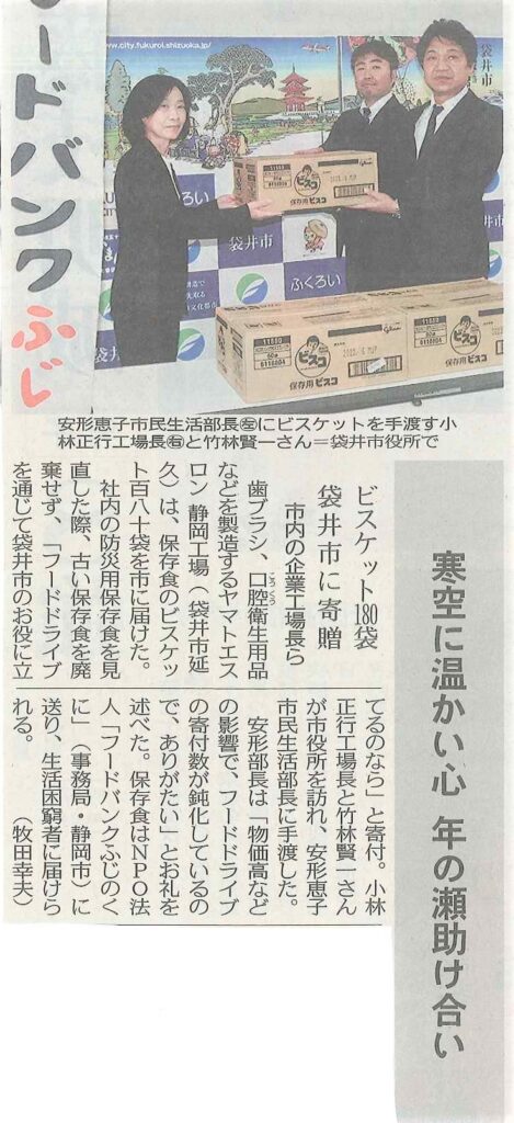 22年12月27日の中日新聞に当社のCSR活動(フードバンク)が掲載されました